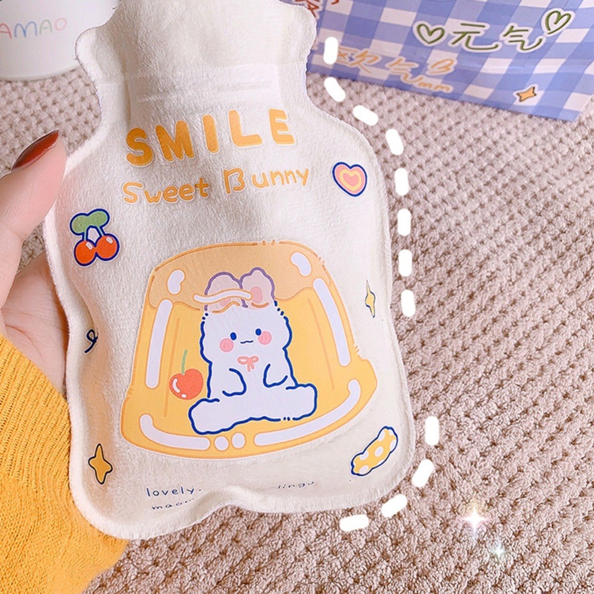 ¡Hermosas, divertidas y prácticas! Mini bolsas de agua caliente con diseños Kawaii, ideales para calentar las manos o zonas localizadas del cuerpo, para tener en los bolsillos, etc. Están fabricadas en PVC y tienen alta eficiencia térmica, por lo que el calor demorará en disiparse NOTA: Para mantener su vida útil y evitar roturas o quemaduras ¡Recordá nunca ponerles agua hirviendo, sólo caliente! Tamaño aproximado: 10cm x 15cm