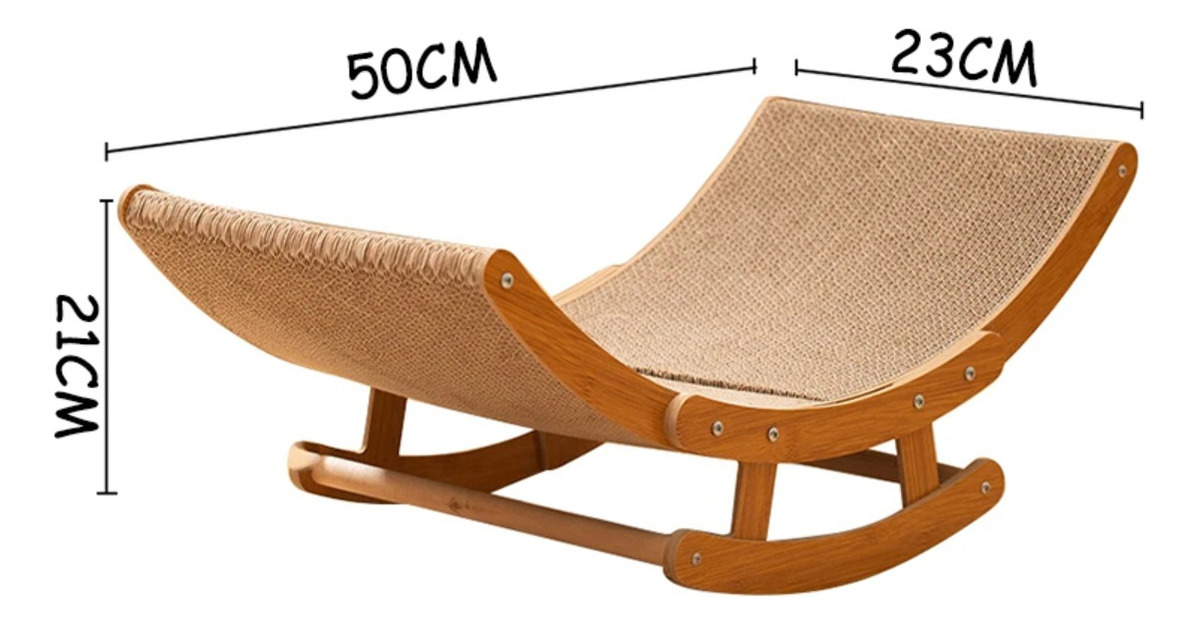 Cama Cucha de Madera Balancín Para Gatos Con RascadorIdeal para evitar el rascado de sillones, muebles y demás. Su base curva genera un movimiento oscilante ideal para divertir al gato mientras afila sus uñas. Su diseño permite también el descanso del mismo.