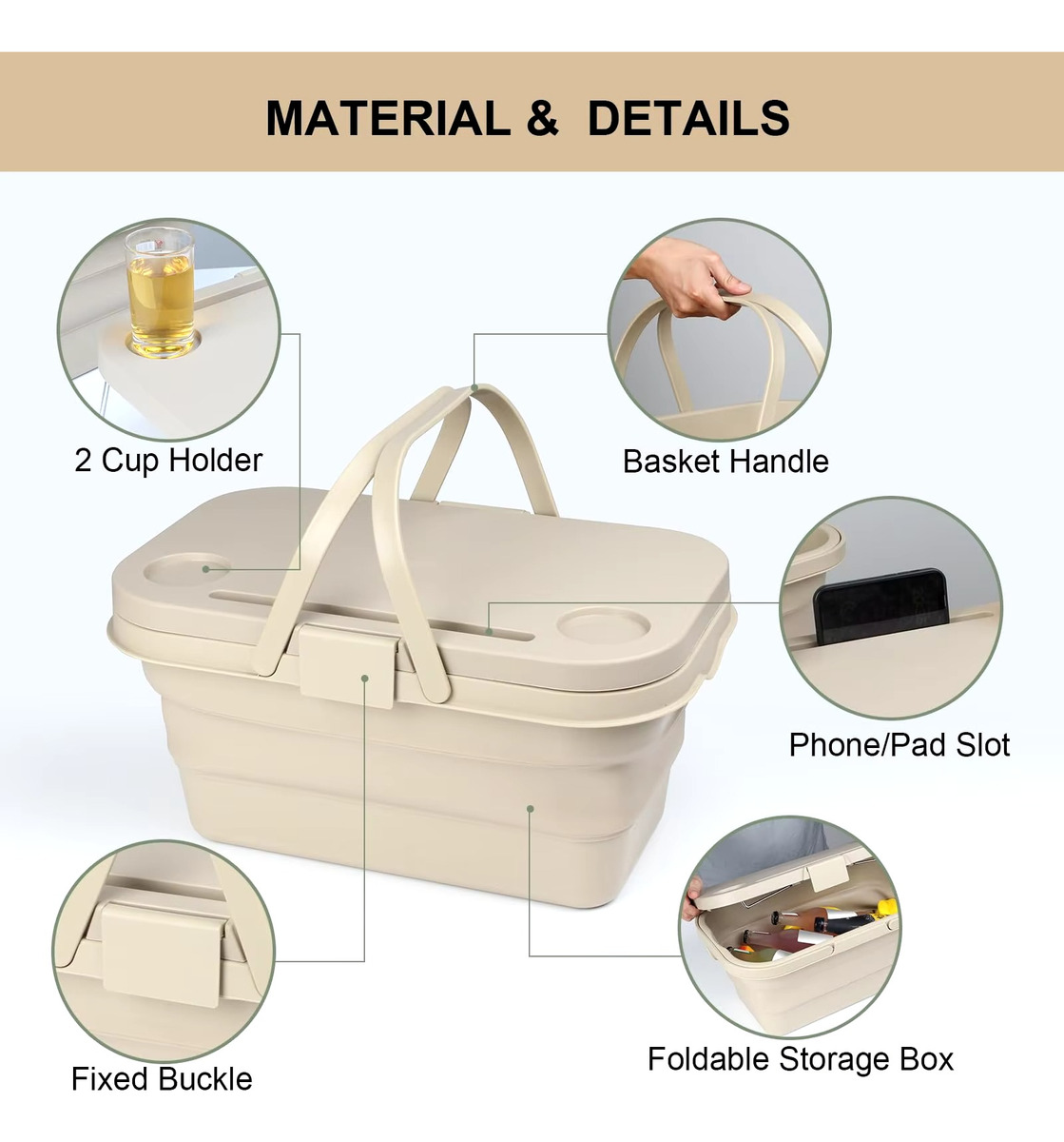Canasto Cesto Para Picnic Plegable Plastico Camping