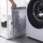 Práctico canasto para ropa sucia o para organizar juguetes, fabricado en tela impermeable con patas plásticas, lo que lo hace ideal para ambientes húmedos como lo son normalmente los cuartos lavaderos.