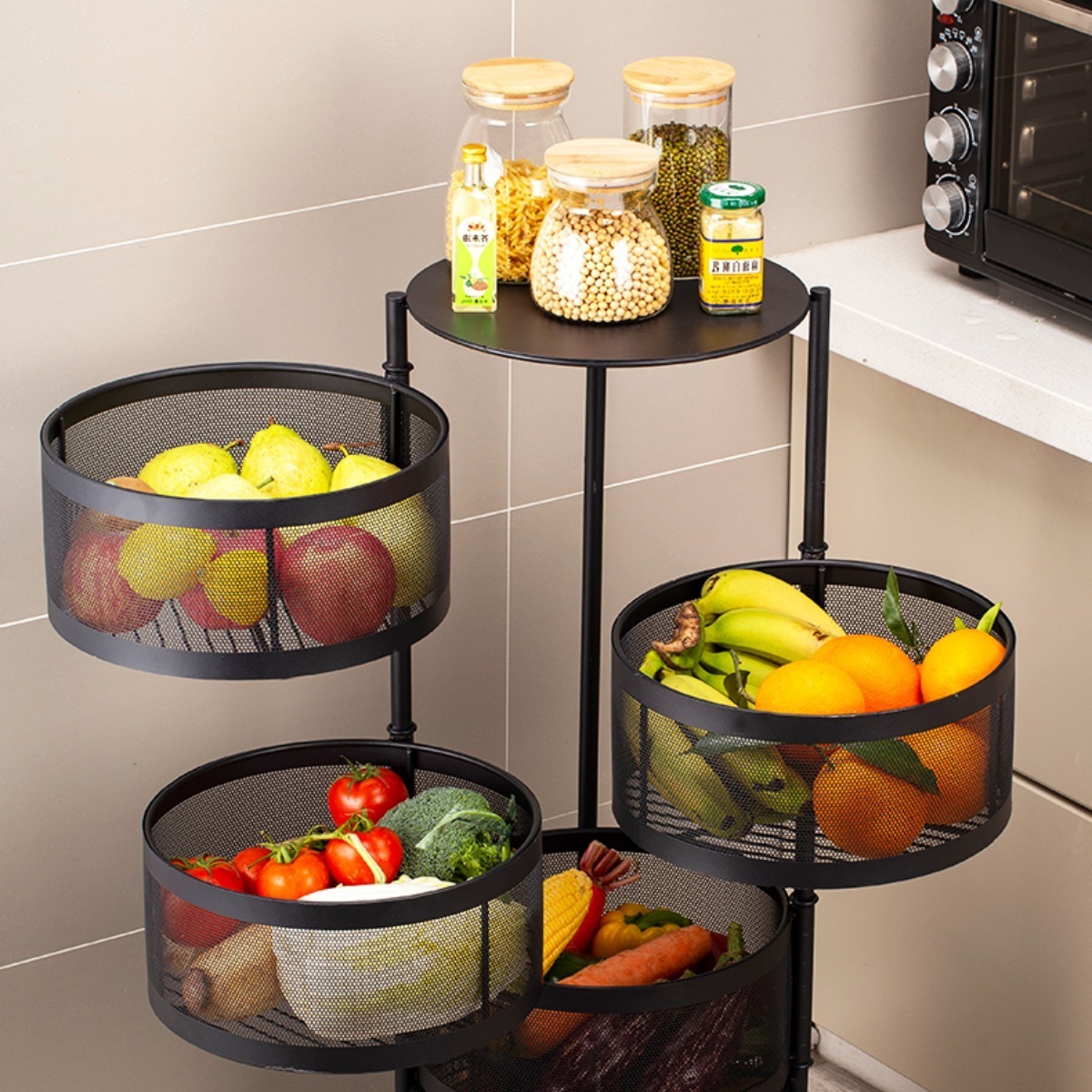 Carro Para Frutas Y Verduras En Hierro 4 Estantes Con Ruedas