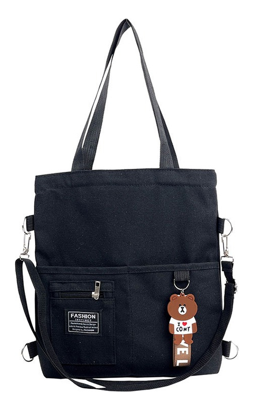Bolso cartera ultraligero con muchos compartimentos. Con dos variantes: blanco/negro. Las medidas aproximadas del bolso son 30 cm de largo x 34cm de ancho. Incluye una correa para usar como mochila. Medida de correa: 50 cm Cuenta con un pequeño llavero y osito.