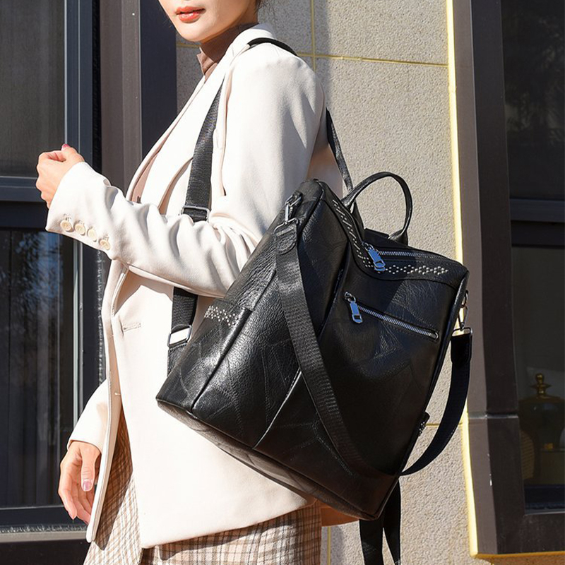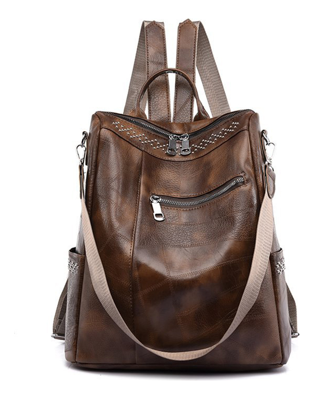 Cartera Mochila Urbana En Cuero Pu Bolsillo Externos