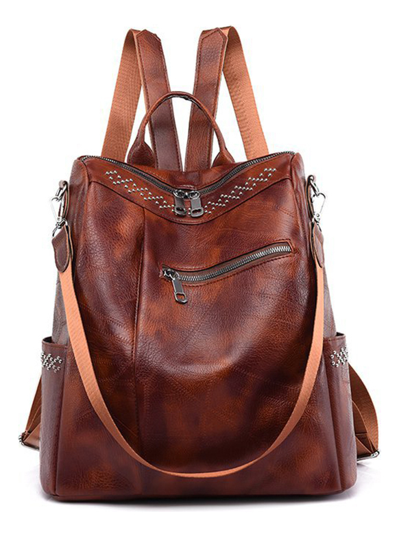 Cartera Mochila Urbana En Cuero Pu Bolsillo Externos |