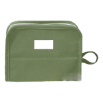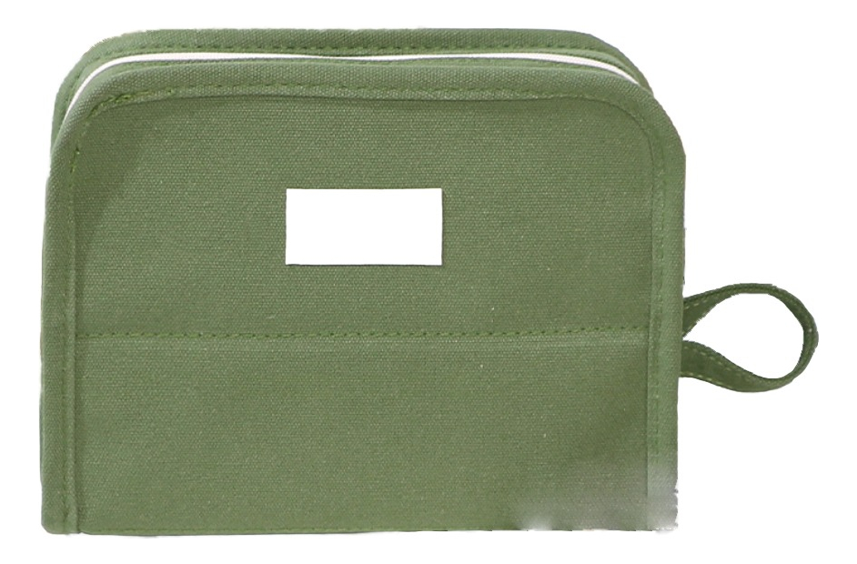 Medidas: 21 cm largo x 15 cm de ancho x 6 cm de alto Material: Lienzo Colores: Crema / Verde