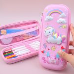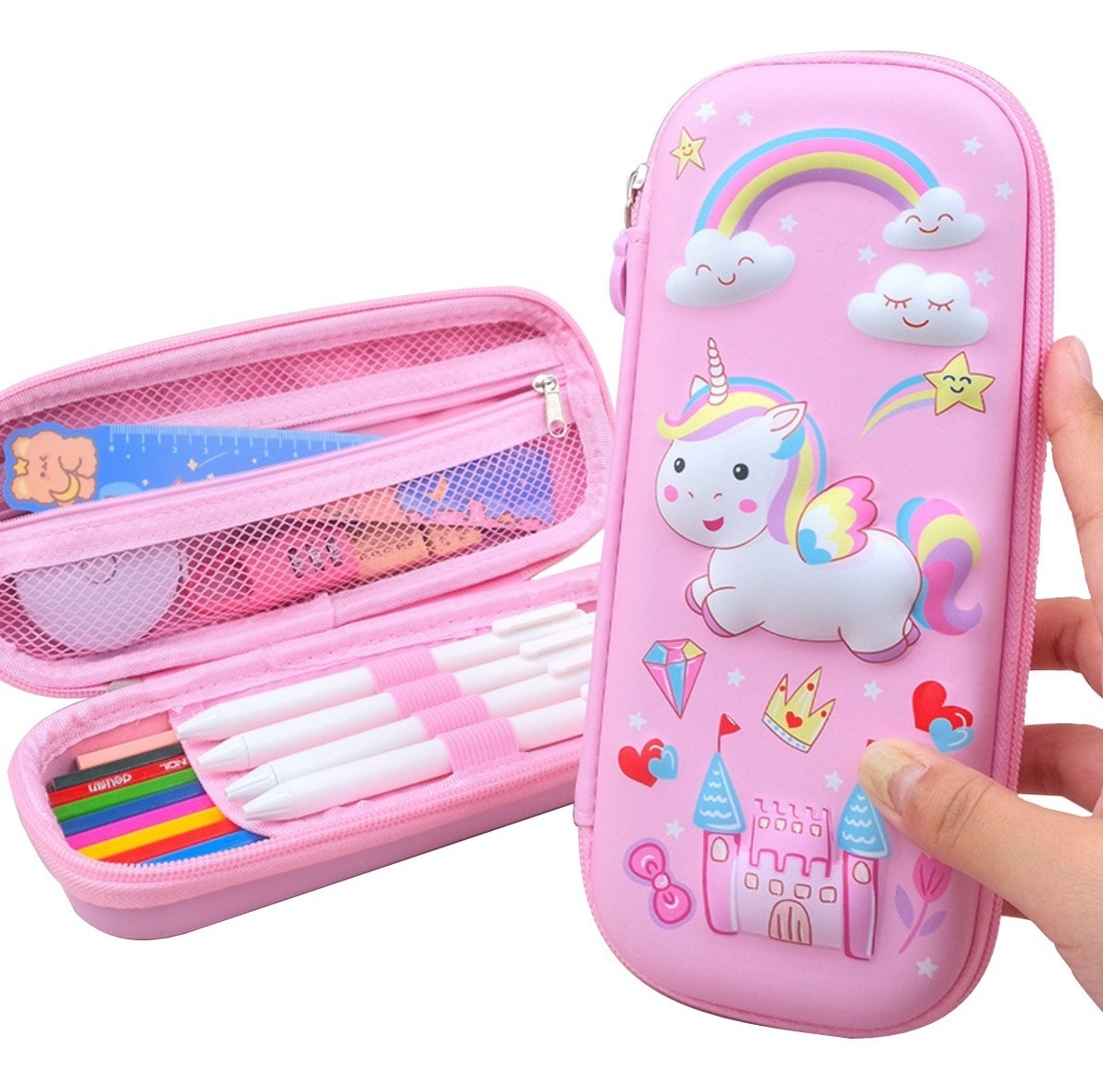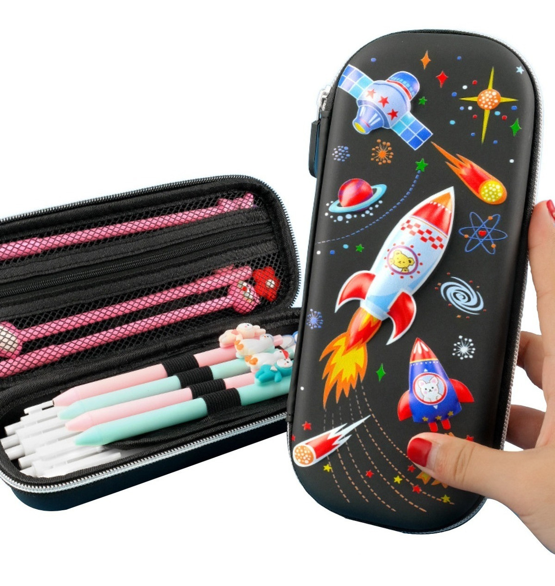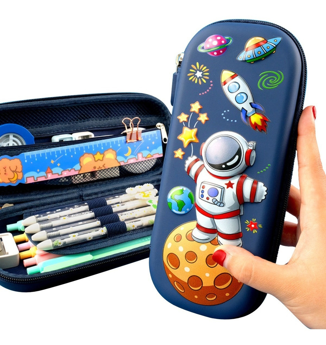 Cartuchera infantil diseño 3D Gran capacidad varios diseños fabricada en PU + EVA con bolsillo con cierre y separador para lápices.