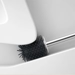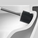 Escobilla para inodoro con sistema auto secante, gracias a su base con doble fondo la misma funciona como una rejilla permitiendo que la escobilla se seque entre uso y uso, minimizando olores y prologando la vía útil de la misma.