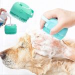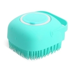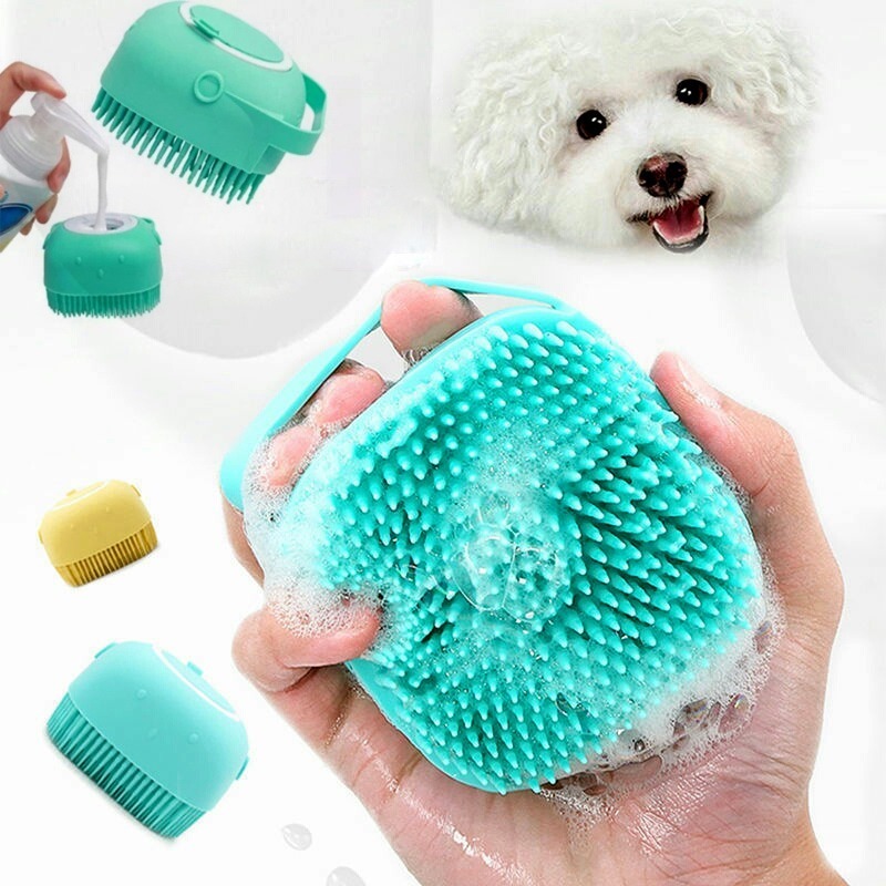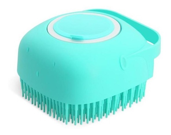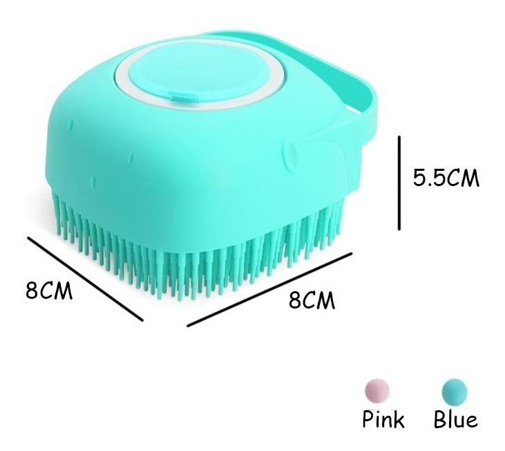Práctico cepillo de silicona para bañar mascotas, puedes colocarle jabón líquido dentro, junto a un poco de agua y agitar para que comience a generar una espuma concentrada, lo que minimiza la cantidad de jabón necesaria, luego presiona suvamente la espojna para que corra un poco de jabón y comienza a bañar a tu mascota con normalidad, también puedes utilizarlo como cepillo normal colocando directamente el jabón sobre sus cerdas flexibles.