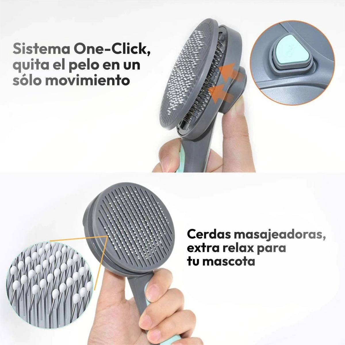 Quitar el pelo de tus mascotas nunca fue tan rápido como con este cepillo quita pelo para mascotas con botón limpia fácil, su formato ergonómico y su sistema One-click hacen que la experiencia sea placentera tanto para ti como para tu mascota.Una vez el cepillo haya recogido suficientes pelos simplemente presiona el botón y el cepillo se limpiará automáticamente, no más quitar pelos uno a uno y luchar con las cerdas.Este cepillo gracias a sus cerdas metálicas con terminación redonda en plástico no sólo quitan el pelo suelto de tu mascota sino que al mismo tiempo la masajean, evitando posibles dolores y calmando a tu mascota al mismo tiempo.