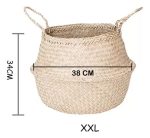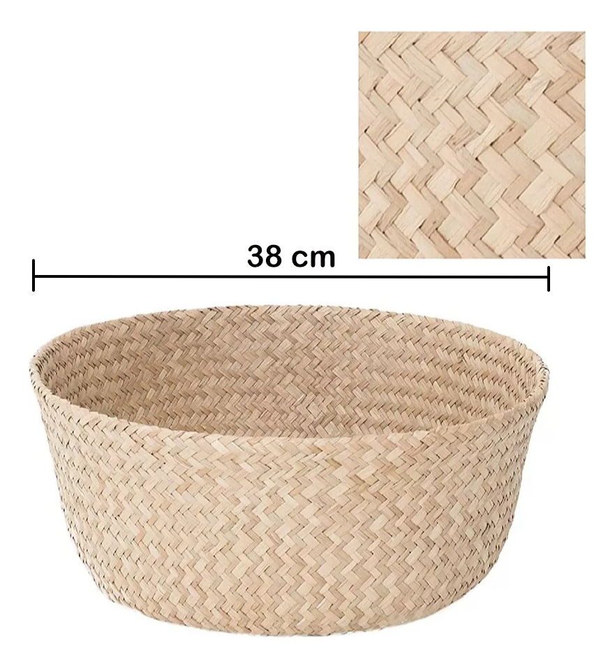 Con asas duraderas y diseño plegable, es ideal para almacenar mantas, toallas, ropa, o incluso como bolsa de playa, cesta de picnic, bolsa de compras o para macetas. Hecho de hierba marina natural, ecológica y respetuosa con el medio ambiente, resistente al agua, manchas y extremadamente duradera. Perfecto para almacenamiento tanto en interiores como exteriores.