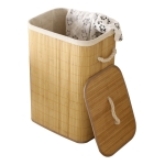 Práctico cesto para ropa sucia fabricado en bambu y tela de polyester; con tapa.