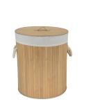 Práctico cesto para ropa sucia fabricado en bambu y tela de polyester; con tapa.