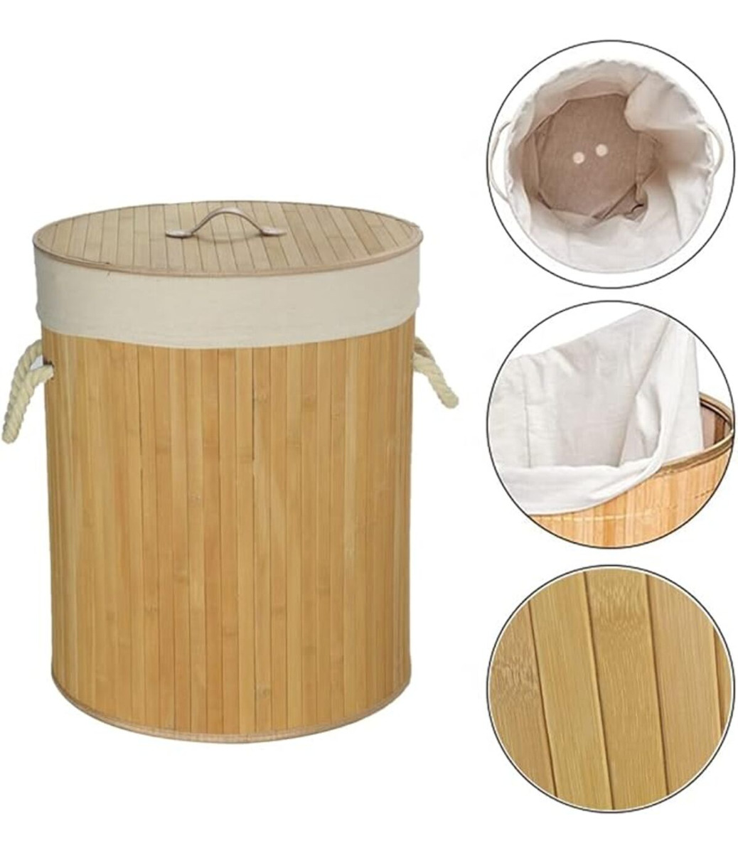Cesto Para Ropa Sucia Gran Capacidad Bambu Con Tapa 50×35