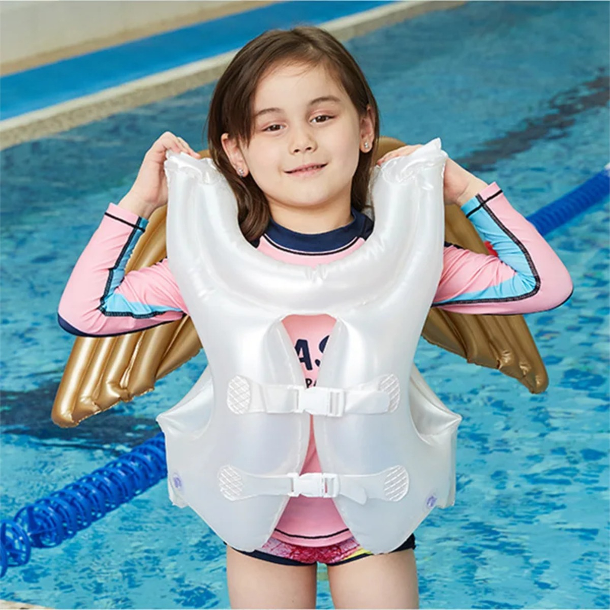 Divertido y funcional: Combina la seguridad con la diversión, permitiendo que tus pequeños disfruten de sus momentos en la piscina mientras se sienten como auténticos ángeles acuáticos.