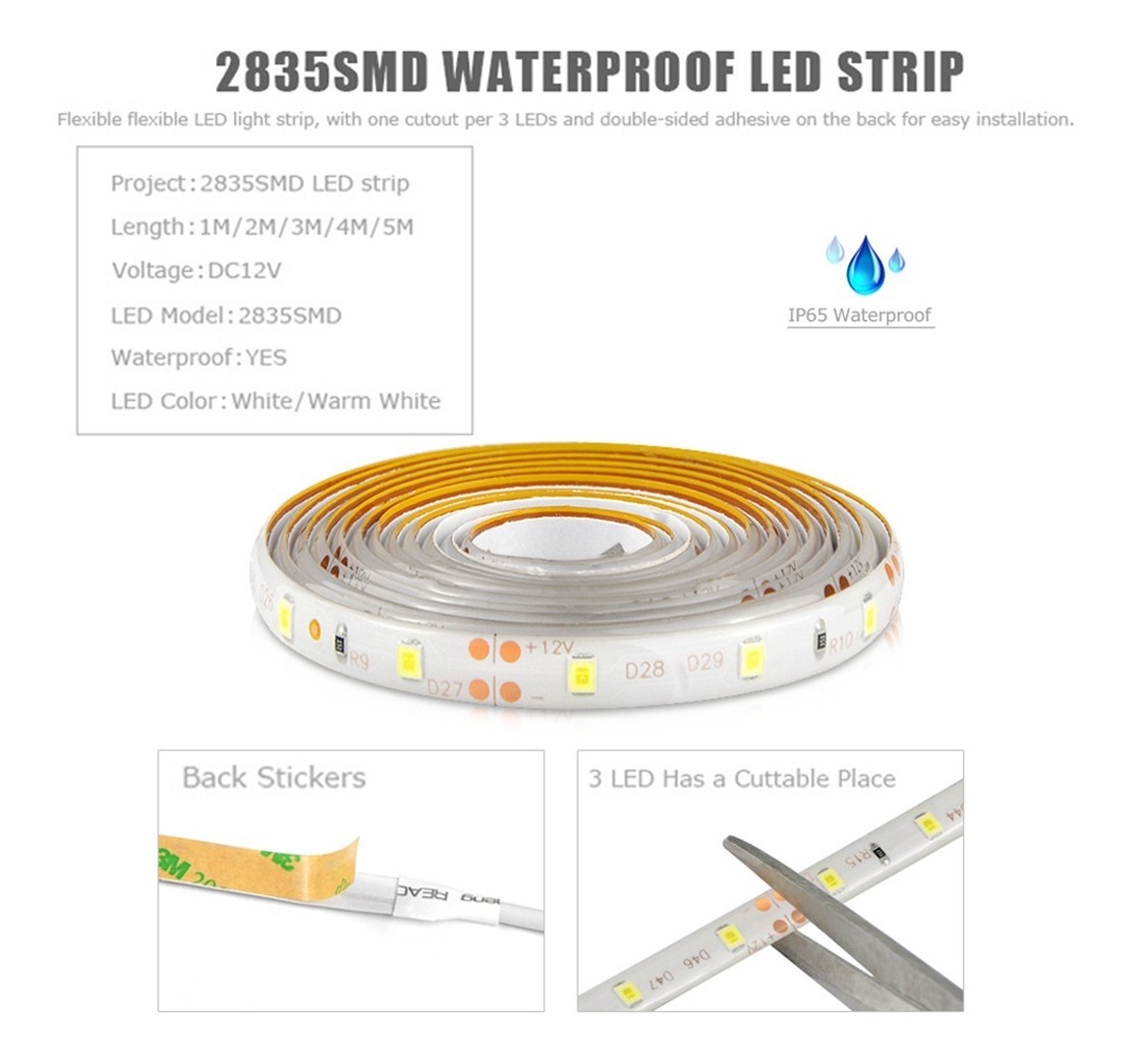 Tipo: tira de LED de 12V 2835 con Sensor de movimiento y adaptador de corriente de 2a Tipo de