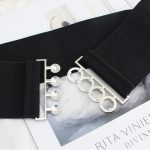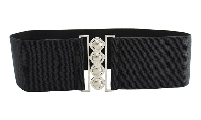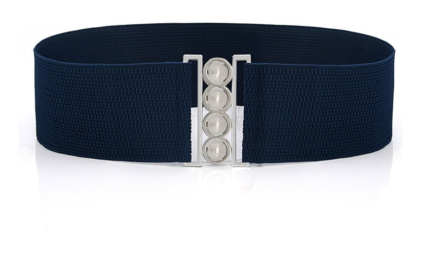 Cinturón elástico con hebilla con diseño, material elástico. Largo 82 cm.