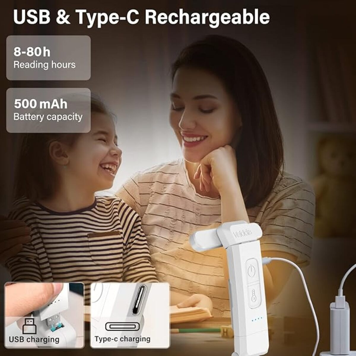 Clip de Luz LED para Lectura, ideal para iluminar libros, cuadernos o pantallas sin molestar a los demás. Cuenta con un diseño compacto y liviano, con brazo regulable hasta 90° y cabeza rotativa para ajustar el ángulo de luz según la necesidad. Dispone de varios tipos de luz para mayor comodidad visual (luz fría, media cálida, cálida y combinación de las tres). Recargable por USB tipo C, ofrece una larga duración de batería y un uso eficiente. Perfecta para leer en la cama, viajes o estudiar en ambientes con poca luz.