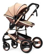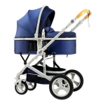 Cochecito de aluminio y un moderno diseño, la posición de la cuna se puede ajustar libremente.