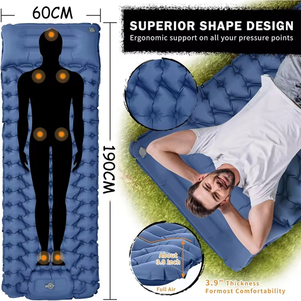 Este colchón inflable es la opción ideal para acampar con comodidad. Súper liviano y fácil de transportar, se infla rápidamente y ofrece un descanso confortable en cualquier terreno. Perfecto para aventuras al aire libre, su diseño compacto permite guardarlo sin ocupar espacio. Disfruta de un sueño reparador dondequiera que vayas con esta colchoneta inflable.