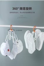 Características: – Suspensión Vertical: adecuado para varios tipos de zapatos, el secado vertical hace que los zapatos sean más fáciles de secar. – Con Clips: con cuatro clips multifuncionales para secar calcetines, plantillas y cordones de zapatos. – Rotación de 360 grados: Diseño de gancho giratorio, a prueba de viento y más cómodo de usar. – Apilable: almacenamiento apilable, solución de ahorro de espacio para usted en el dormitorio, armario y Zapatero.