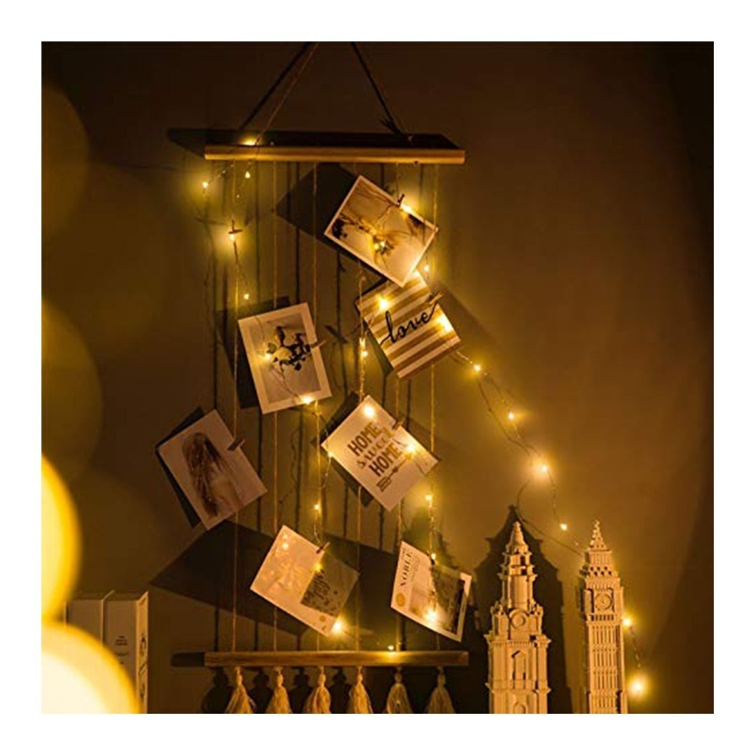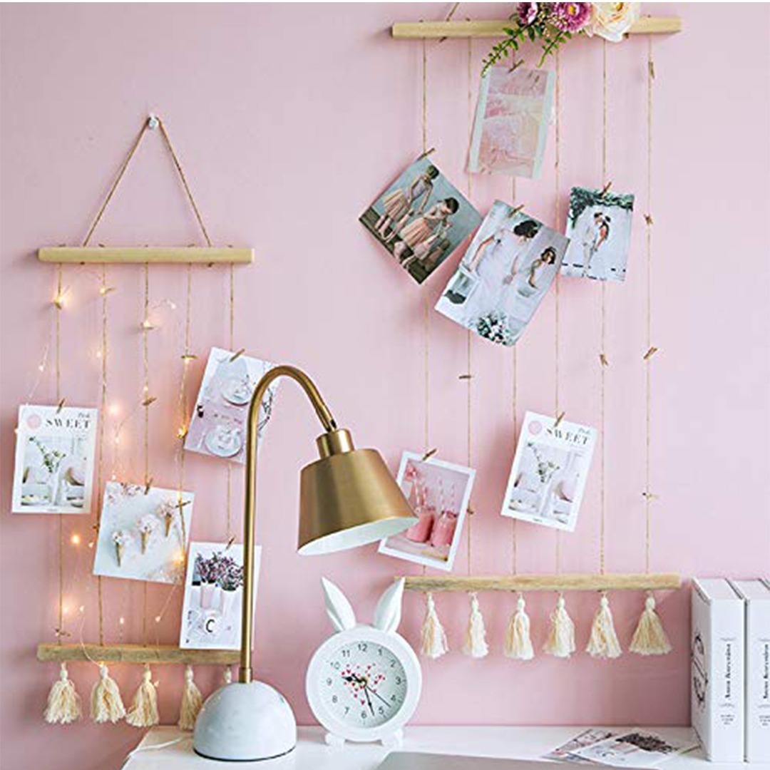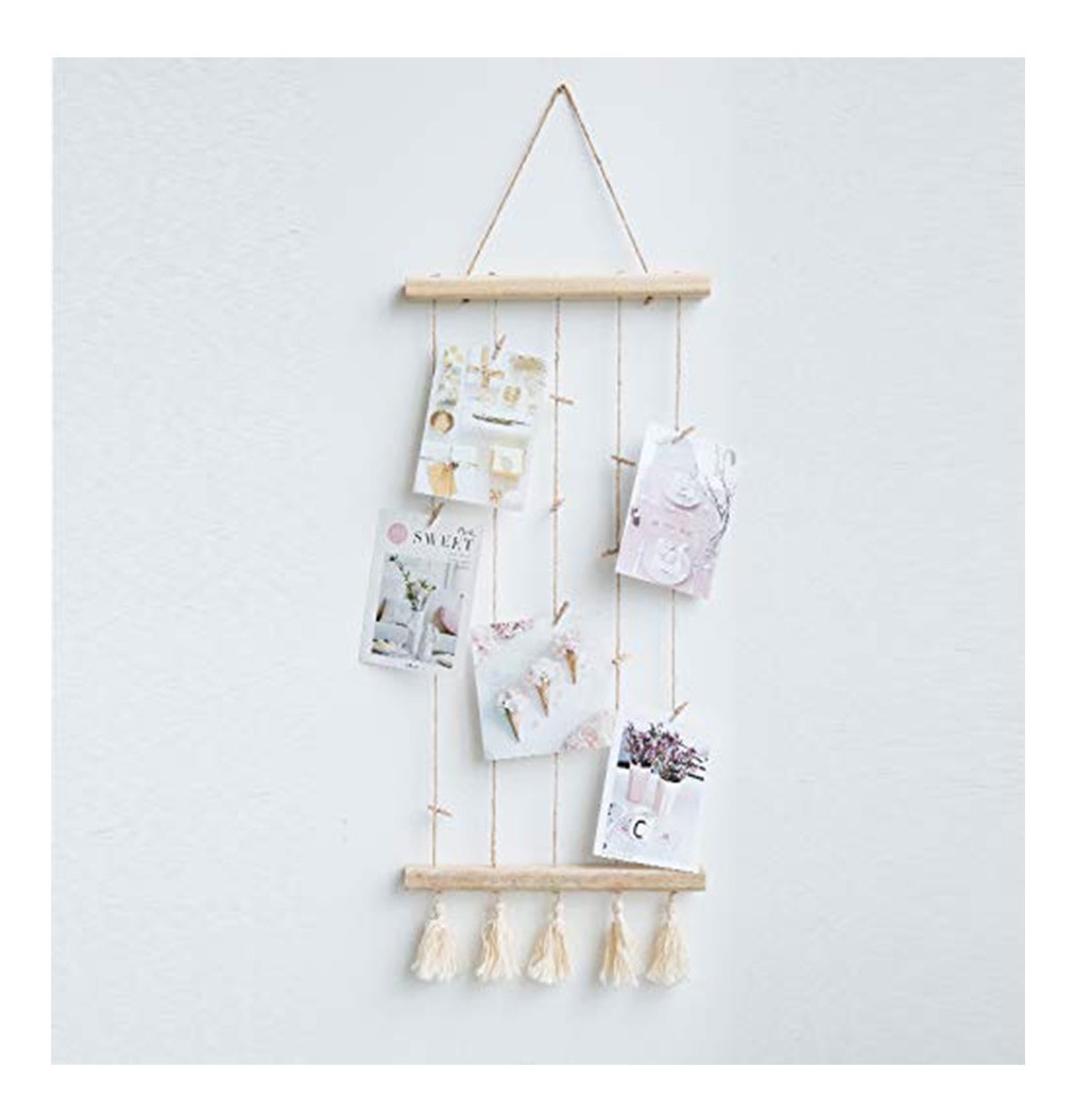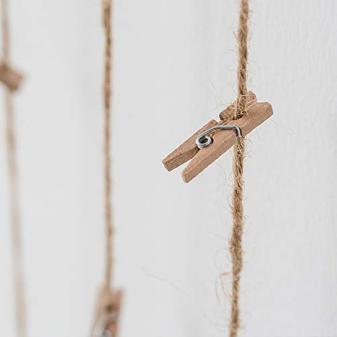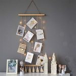 COLGANTE DE PARED DE FOTOGRAFÍA ÚNICA: el diseño único de Hangit te da la libertad de crear un collage de fotos usando imágenes (y otros recuerdos) de todos los tamaños, se puede montar vertical u horizontalmente. Materiales: cordón de algodón y taco de madera, con clips de madera extraíbles. Decoración hermosa, duradera y ecológica, adecuada para uso en interiores. ¡Los accesorios no están incluidos en este artículo!