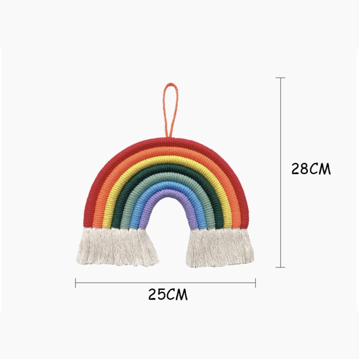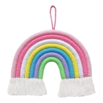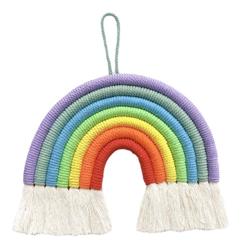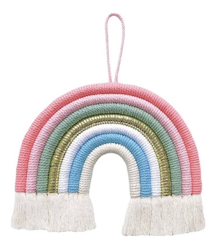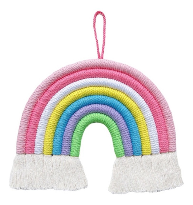 Sumale carácter y encanto a cualquier pared de tu casa con este colgante de pared de arcoiris tejido en algodón. Está pensado para la habitación de los niños, pero gracias a sus colores atenuados, no estridentes, permite ser utilizado en varias áreas del hogar; este colgante de pared es una buena opción para la habitación de los niños o la guardería.