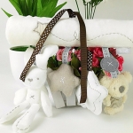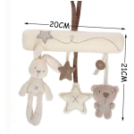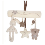 Este colgante tipo móvil de peluche es ideal para bebés, permitiéndote atarlo al cochecito o a la cuna para mantenerlos entretenidos. Es un juguete sensorial que estimula los sentidos del bebé: el conejo emite una melodía al apretarlo, la estrella grande funciona como chifle, y el oso es un sonajero. Con un estilo moderno y colores calmos, es perfecto para acompañar a tu bebé en sus momentos de descanso o paseo. Un accesorio adorable y educativo para los primeros meses de vida.