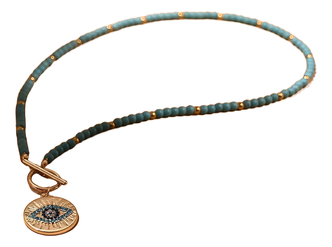 Ideal para quienes buscan un complemento de estilo con un valor simbólico, este collar es perfecto para cualquier ocasión, aportando un toque de color y protección a tu look. Su diseño versátil lo hace fácil de combinar con otros accesorios, ofreciendo un estilo bohemio y moderno.