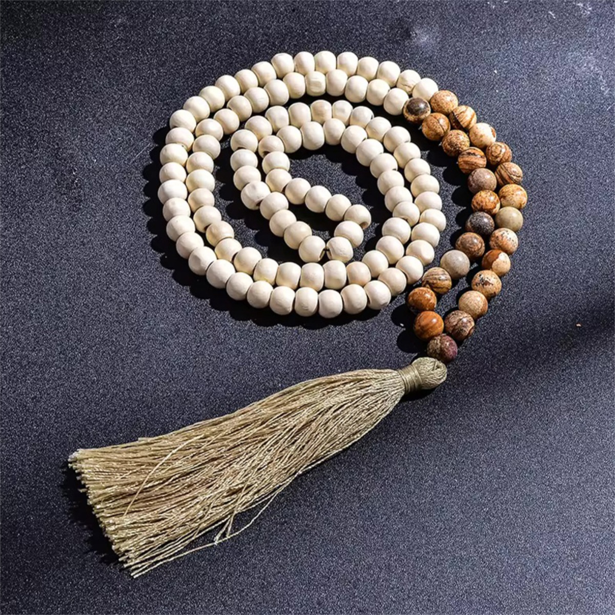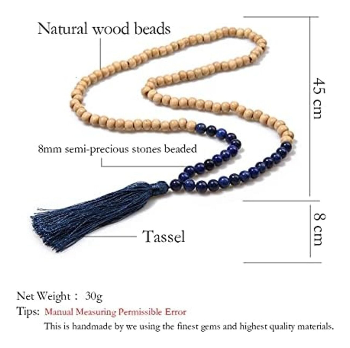 Collar De Madera Largo Tipo Japamala Bohemio Natural |