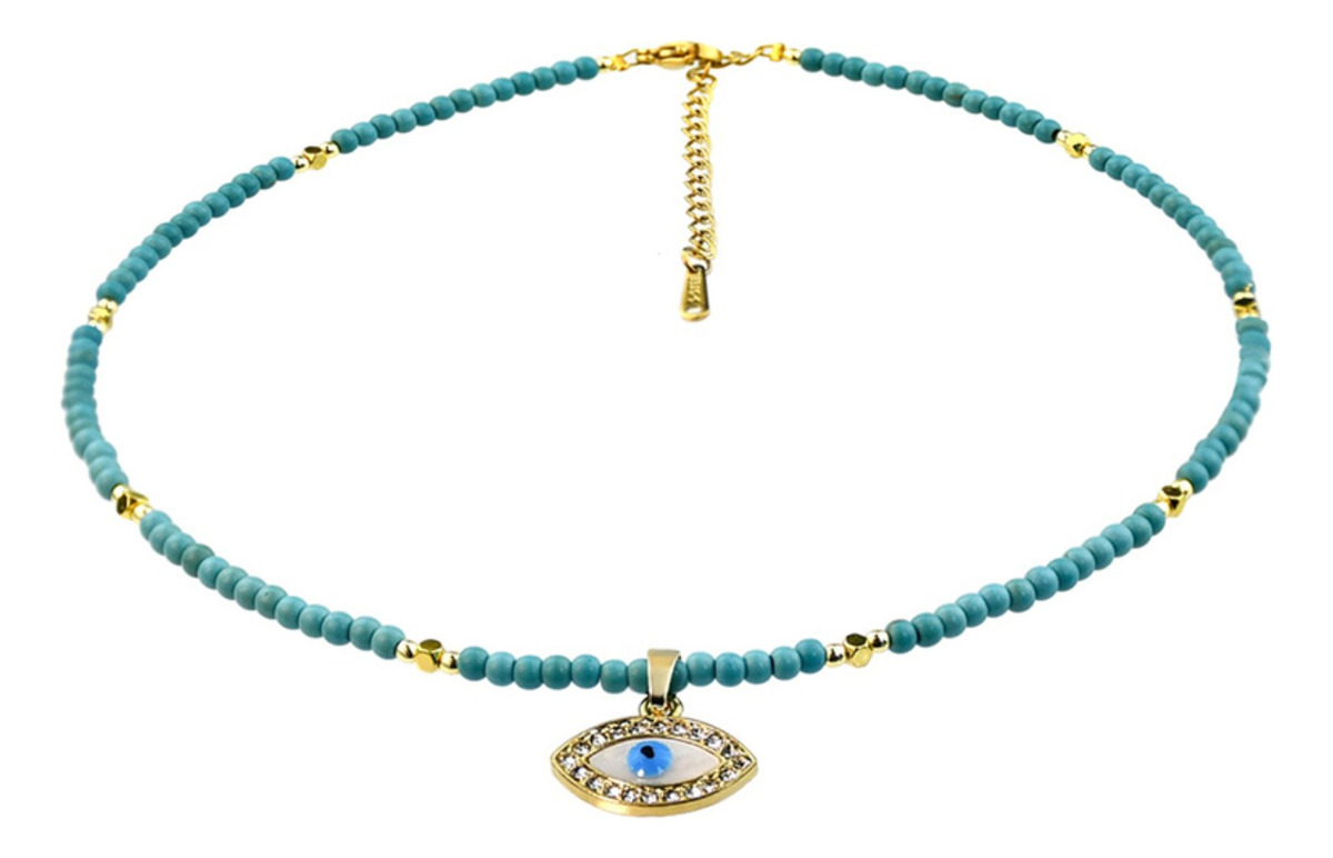 Collar Ojo Turco de Cuentas con Dije Detalles Dorados |