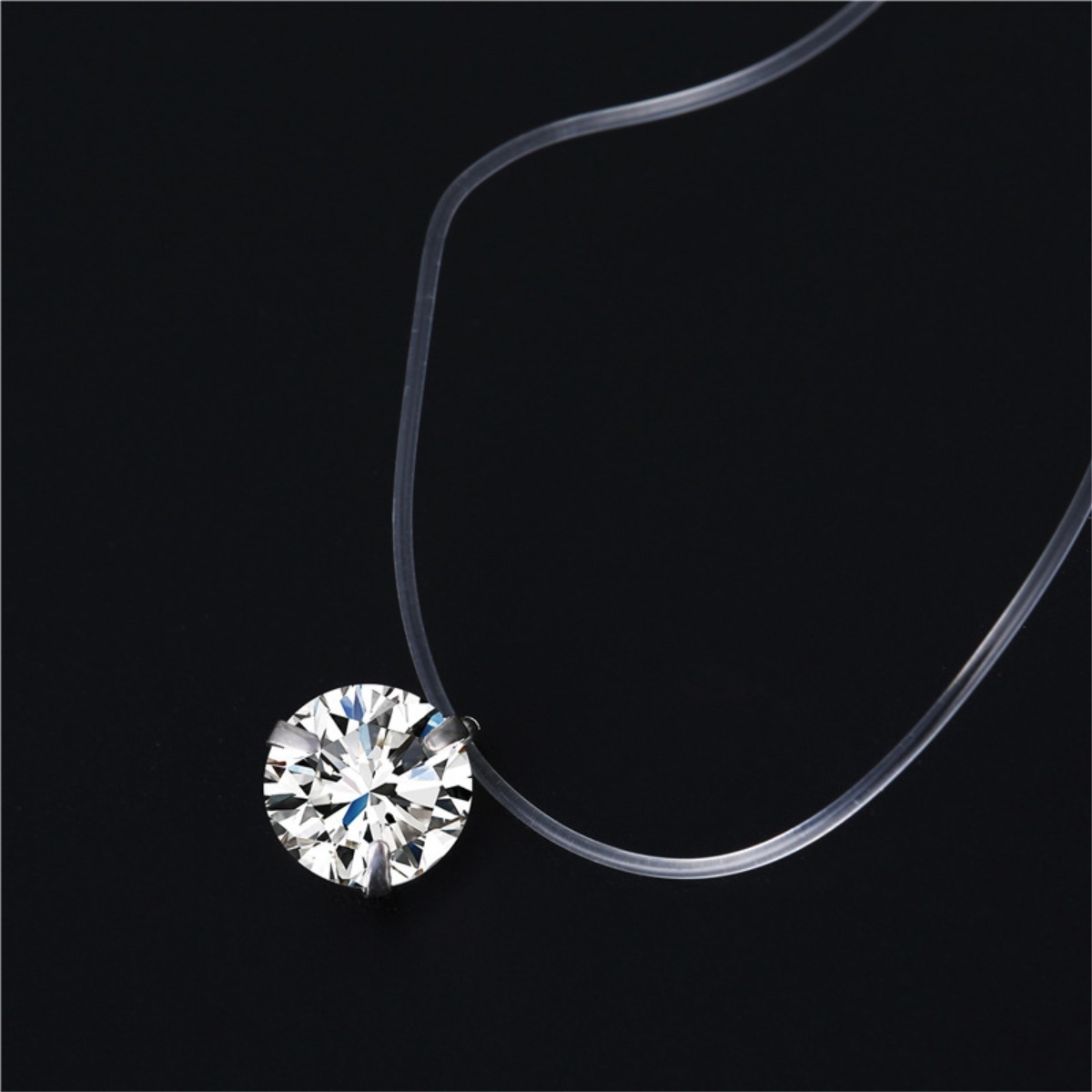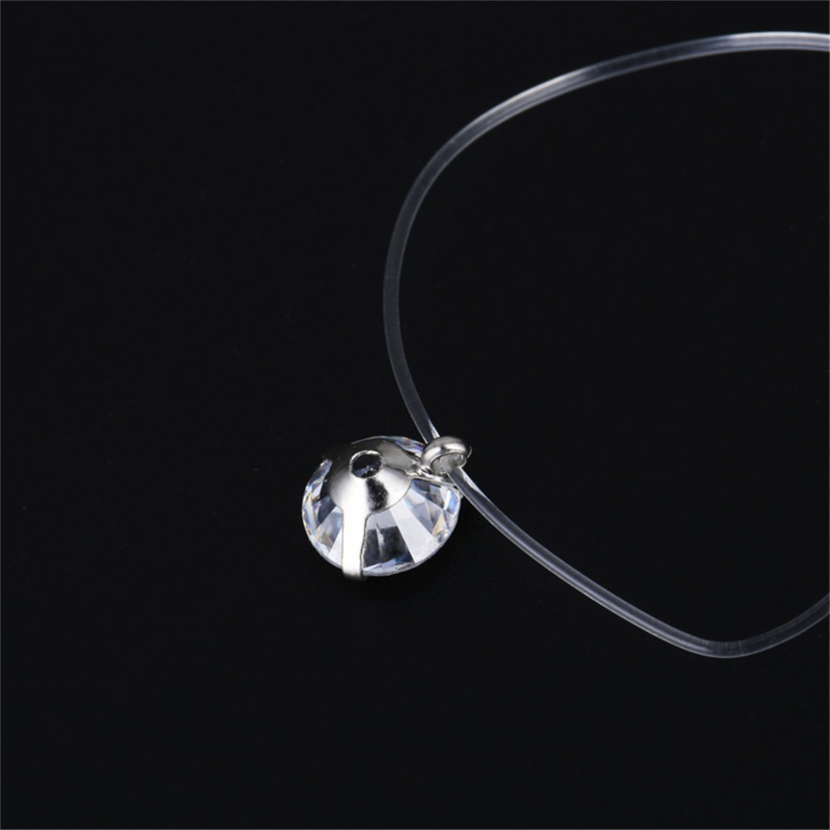 Cadenita super delicada en tanza y cristal de zirconia, ideal para un estilo minimalista, super delicado y simple. Muy moderno.