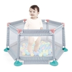 – Corral para bebé hexagonal. – Con red. – Incluye 10 pelotas plásticas para pelotero. – Medidas 48 cm. de lado, 115 cm. de ancho total (incluyendo la base), – 115 cm. de diámetro interno del corral, 50.5cm de alto. – De fácil armado, no requiere el uso de herramientas. – Recomendado para niños mayores de seis meses.