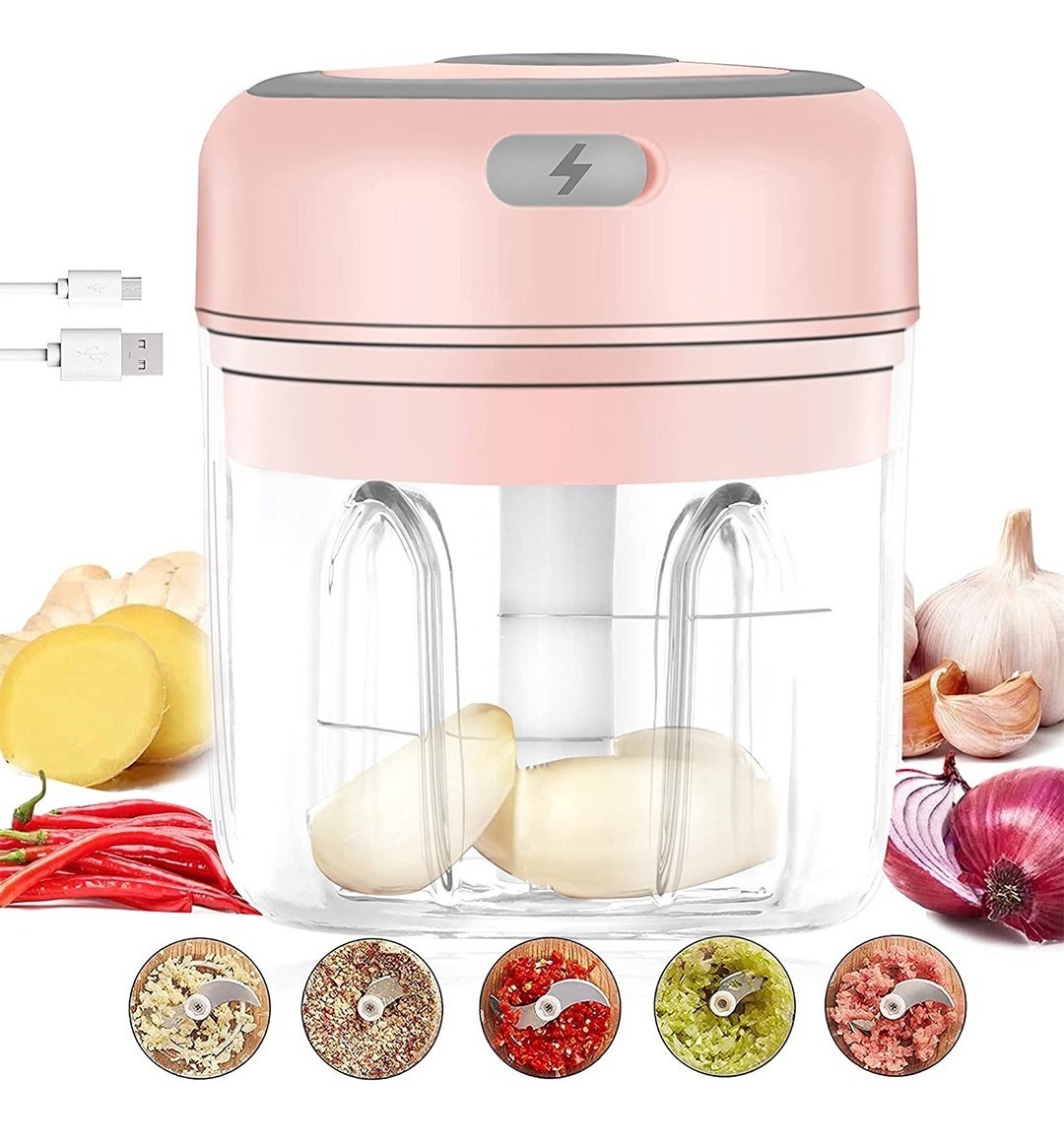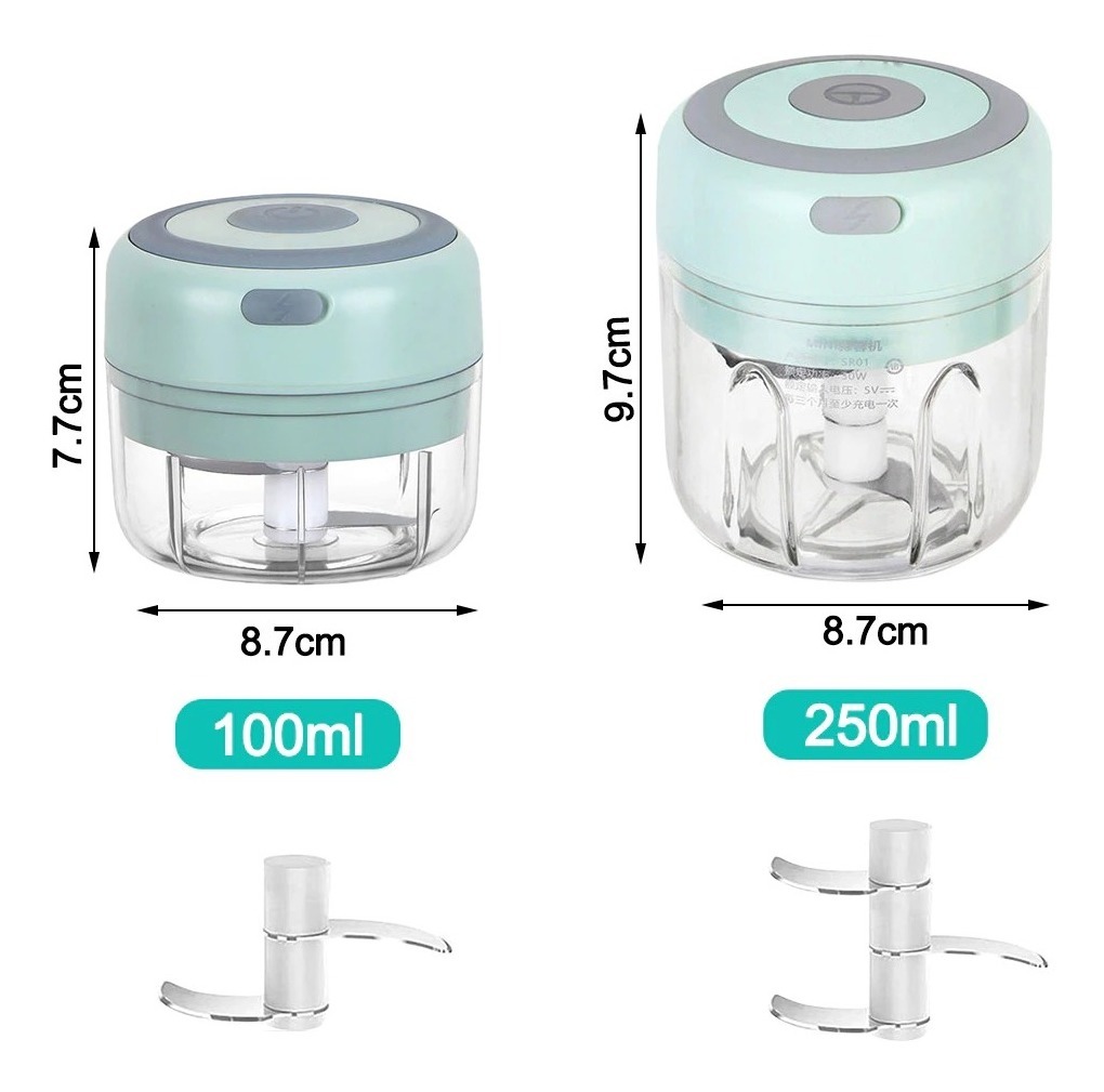 Cortador Triturador Eléctrico Ajo Verduras Recargable 250 Ml