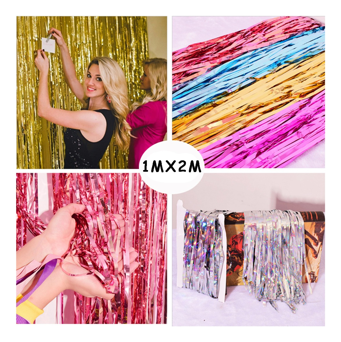Cortina metalizada ideal para decoraciones de todo tipo de eventos como bodas, baby showers, cumpleaños y más. Perfecta como fondo para fotos originales y divertidas. Medida aproximada: 1 x 2 metros.