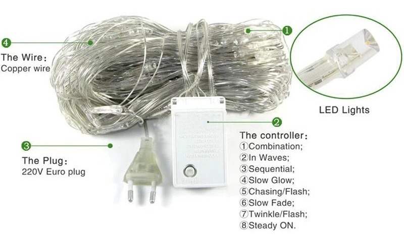 Cortina Red Cálida 220 Led 2×2 Metros Boda Fiesta Decoración