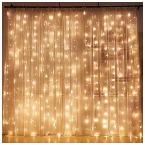 Las Cortinas Led son: •Luz: cálida •Medida: 3x3mts •8 funciones. •Conector para unir más guías. •Guía a corriente