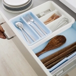 Organiza tus cubiertos de forma práctica y eficiente con este cubiertero extensible. Su diseño ajustable permite adaptarse a cajones de diferentes tamaños, gracias a su sistema de bloqueo que asegura un ajuste perfecto.