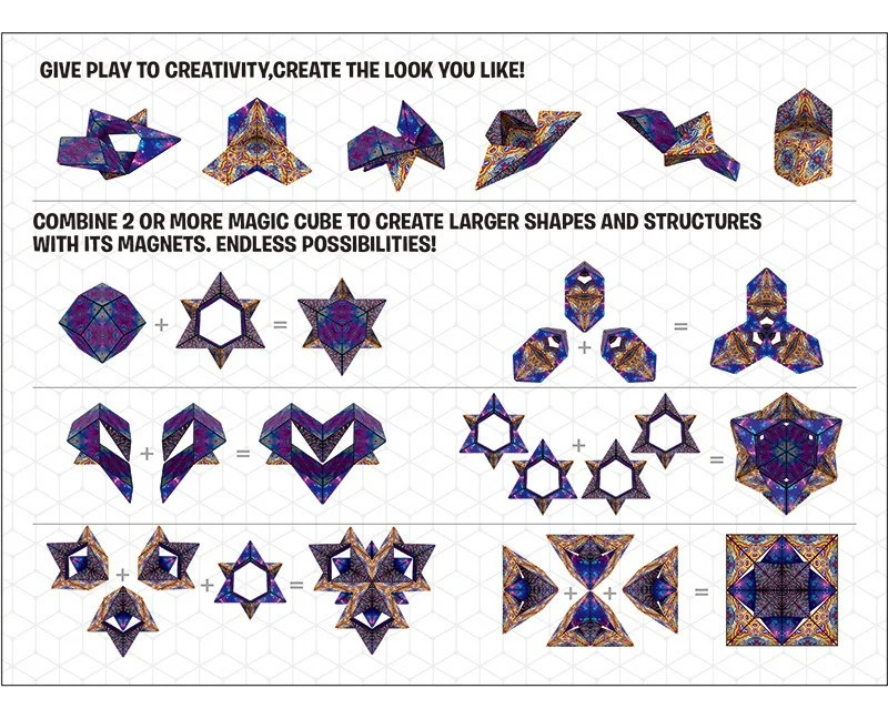 ¡Deja volar tu imaginación con el Cubo Mágico Cósmico Infinito! Este cubo magnético te permite crear hasta 72 formas diferentes, y si juntas dos cubos, las posibilidades aumentan aún más. Con piezas magnéticas de alta calidad, es ideal para desarrollar la creatividad, la concentración y las habilidades espaciales. El límite de las combinaciones es solo tu imaginación. ¡Un juguete fascinante para horas de diversión y aprendizaje!