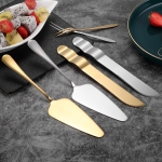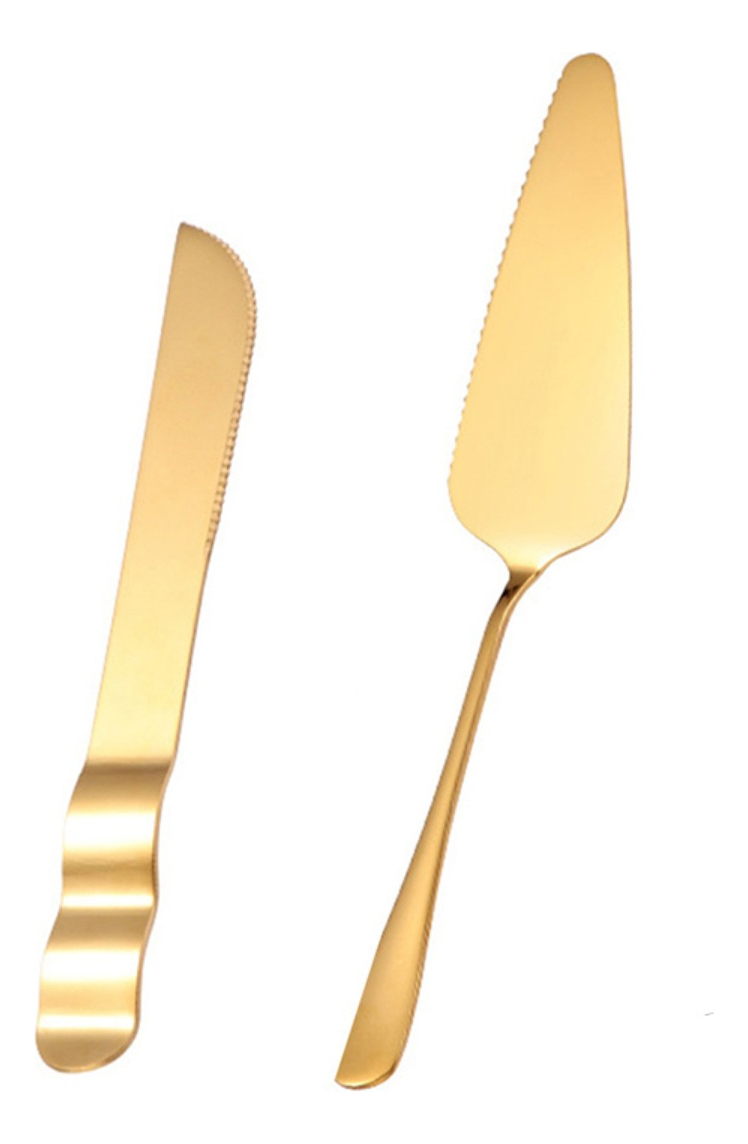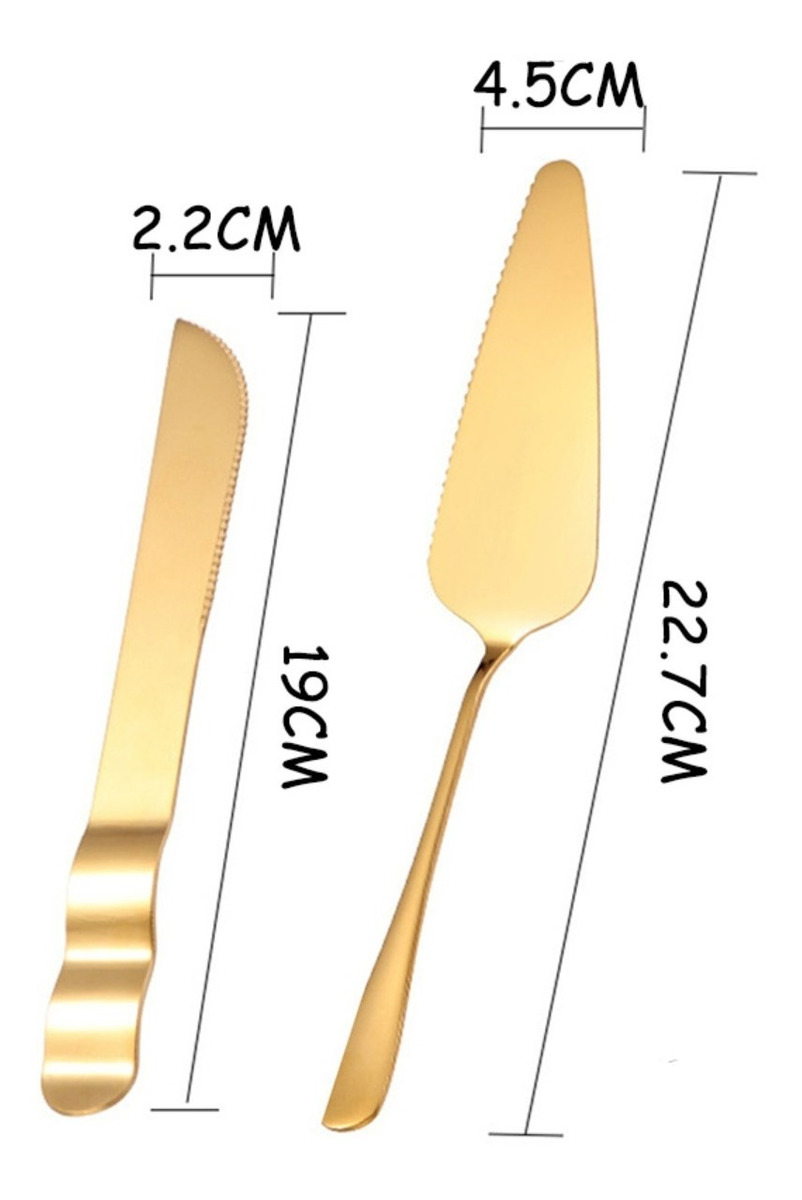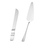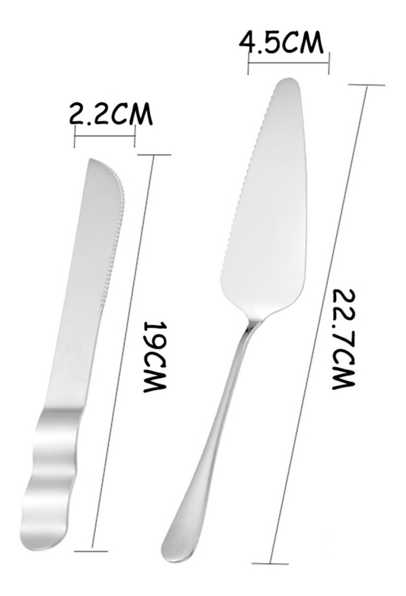 Set de 1 pala y 1 cuchillo ideal para cortar y servir tortas, postres y demás en fiestas, cumpleaños, bodas etc. Fabricado en acero inoxidable
