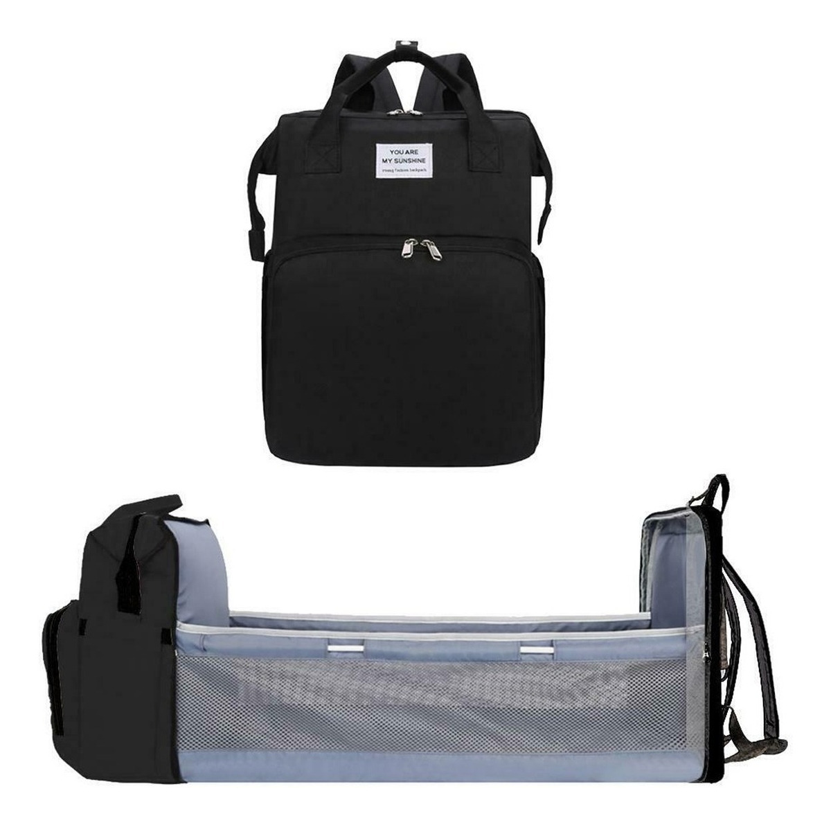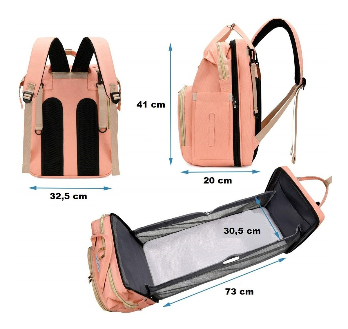 ESPECIFICACIONES: Bolsa maternal/cuna de bebé Tamaño mochila: 32x22x42cm Tamaño cuna: 30,5 x 73cm la cuna aproximadamente Material: tela Oxford
