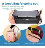 El tamaño de la mochila es aproximadamente 32x42x22 cm y cuenta con 2 bolsillos principales y 12 bolsillos funcionales. Este bolso maternal está fabricado en tela Oxford de alta calidad, impermeable, resistente a las roturas y fácil de limpiar, y cuenta con dos cintas para ajustarla en el cochecito y evitar cargarla en la espalda.