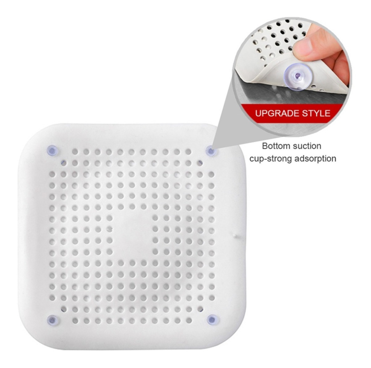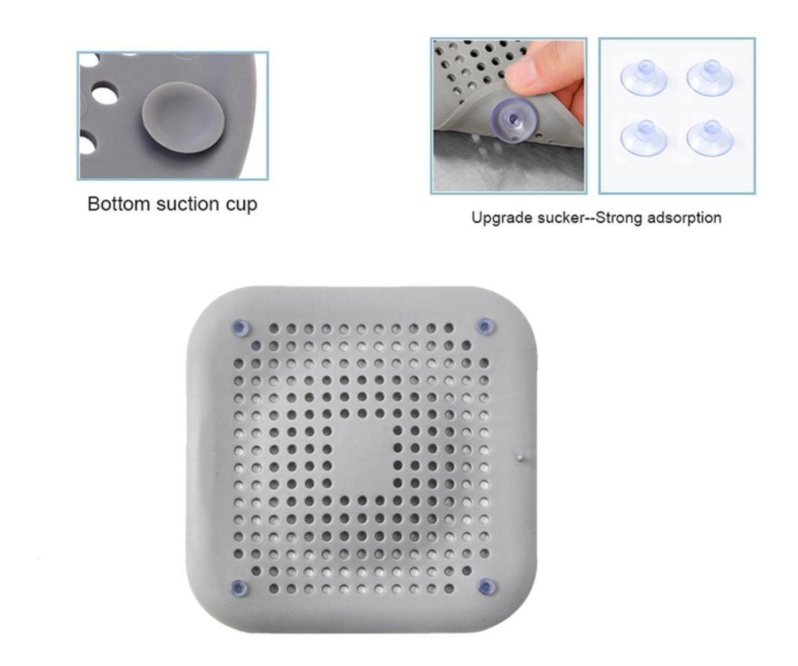 Ideal para evitar que pelos y restos de alimentos se vayan por el drenaje tanto del baño como de la cocina, puede utilizarse con o sin ventosas (incluidas) fabricado en plástico flexible. Medida aprox: 14,5 cm x 14,5cm
