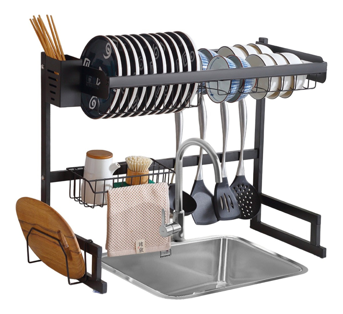 Rack escurridor de vajilla ideal para colocar en la mesada sobre la pileta y aprovechar ese espacio tan poco usado. Tiene espacio para todo lo que necesites: Espacio para escurrir platos, bowls, cubiertos, cuchillas, utensilios, tablas y más!
