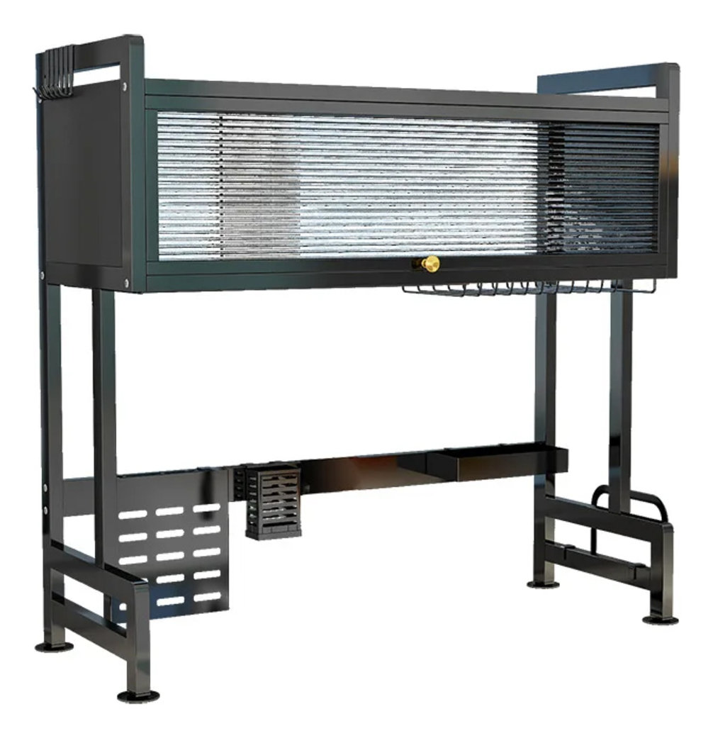 Optimiza el espacio en tu cocina con este escurridor de acero con tapa. Su diseño de gran capacidad te permite secar y organizar platos, vasos y utensilios de forma eficiente. Ideal para colocarlo sobre el fregadero, cuenta con compartimentos especiales para cubiertos y tablas de cortar. Robusto, duradero y fácil de limpiar.