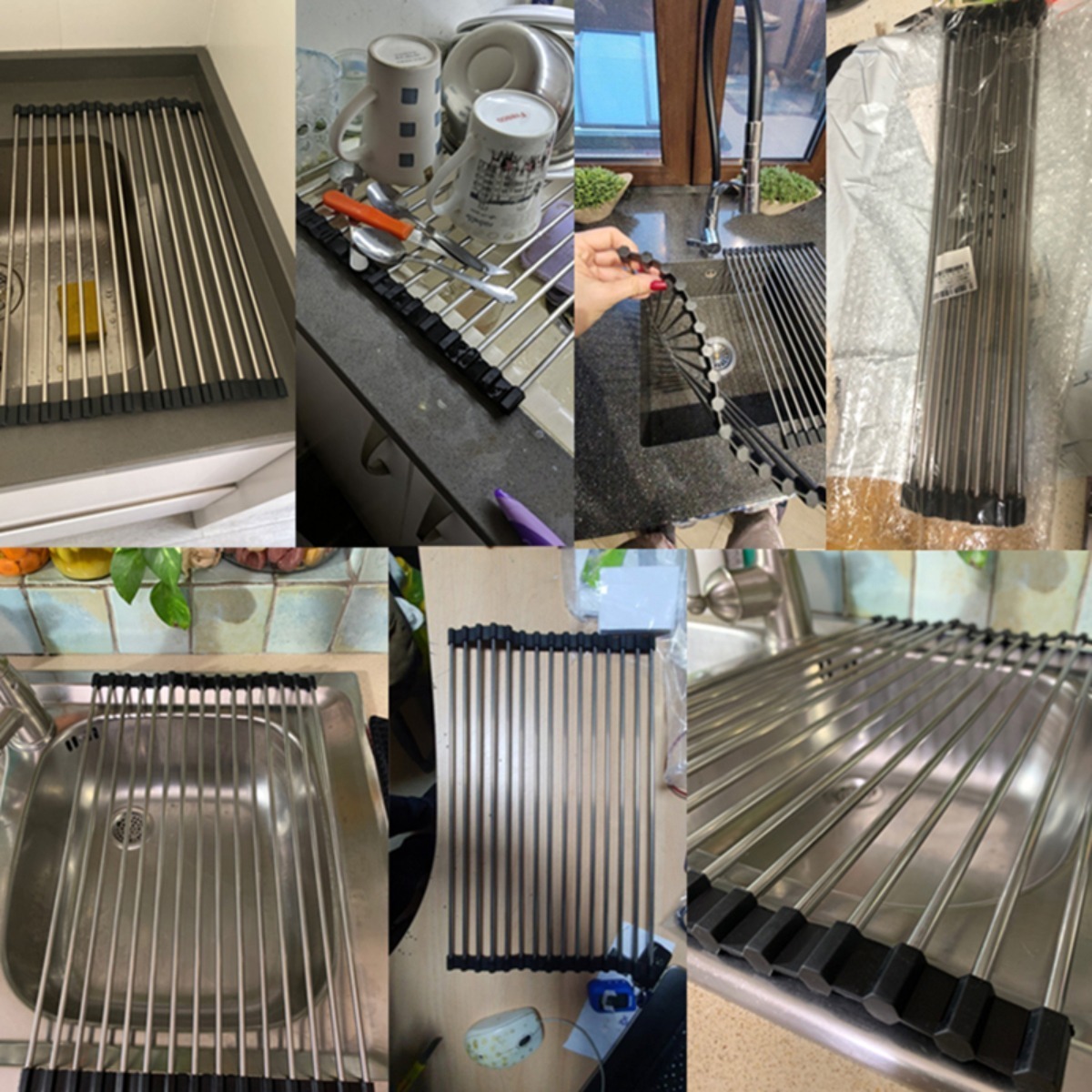 Rejilla plegable (enrollable) para escurrir platos, vasos, cubiertos y mucho más. Su diseño permite colocarse en la pileta por lo que no ocupa prácticamente lugar, luego de utilizado, puede enrollarse y guardarse hasta su próximo uso.