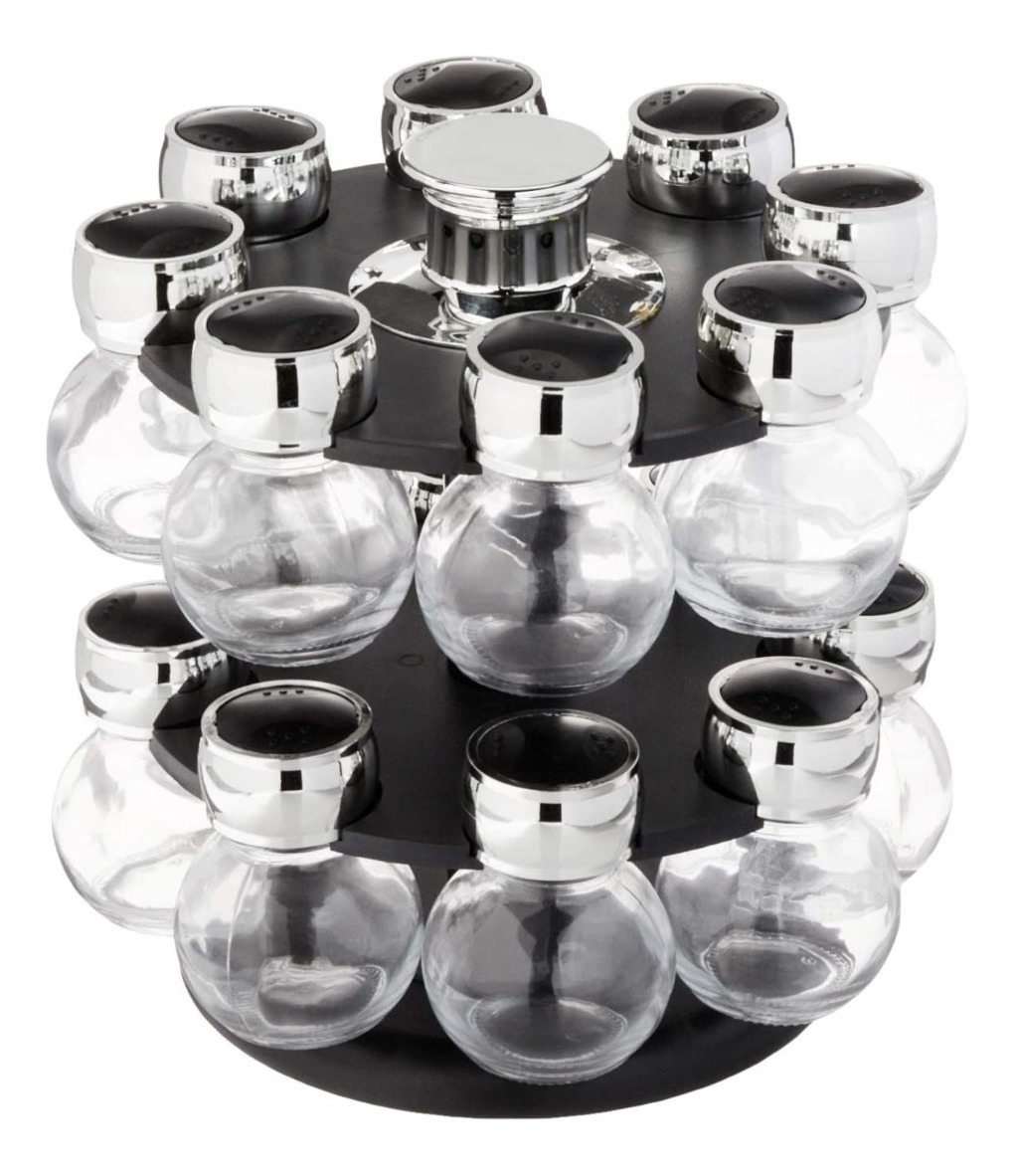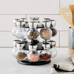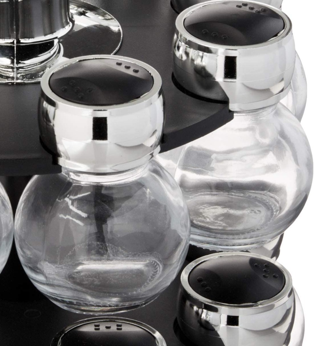 – CANTIDAD 16 frascos de vidrio para especias: el estante para especias gira fácilmente para obtener las especias para una receta específica. Con 16 frascos de vidrio para especias, es ideal para almacenar diferentes condimentos, especias y hierbas, como sal, pimienta, albahaca, etc. El estante para especias es duradero y los recipientes están hechos de vidrio transparente de alta calidad.