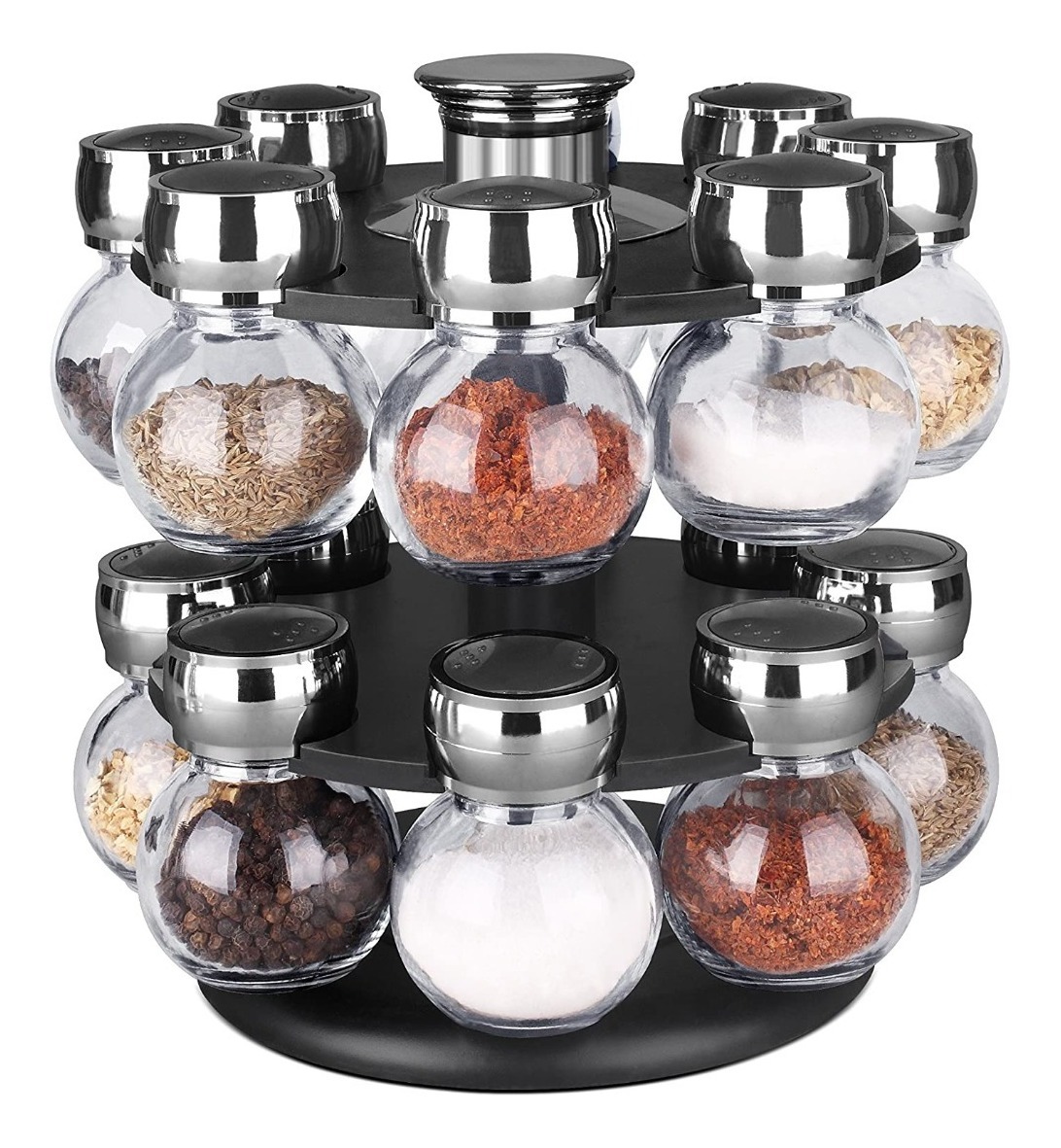 Especiero Vidrio Giratorio 16 Frascos Especias Cocina Tapa