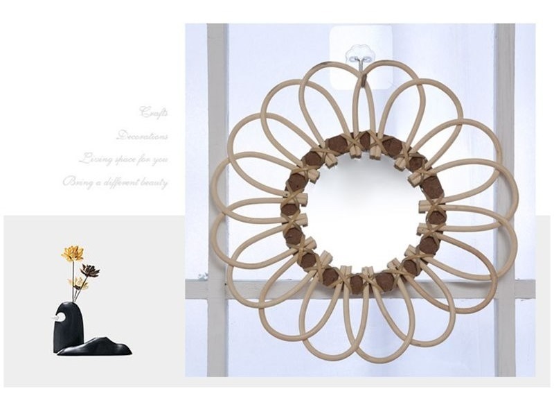 Espejo de ratán hecho a mano!! El marco de madera tiene poca elasticidad y ayuda a proteger el espejo redondo, por lo que es más duradero.