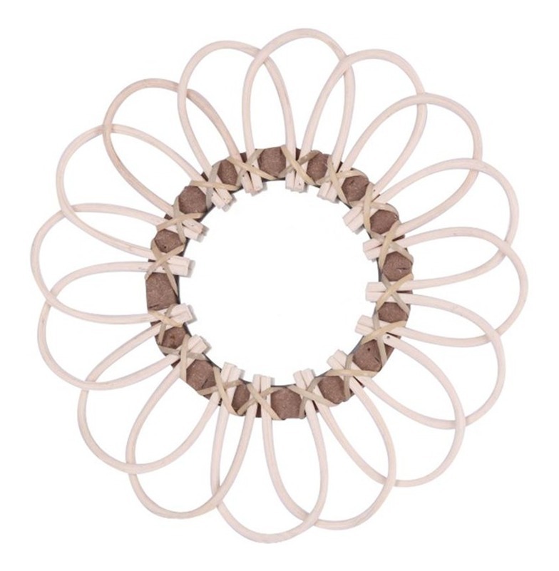 Espejo Colgante Pared Ratán Flor Redondo Decoración 28 Cm