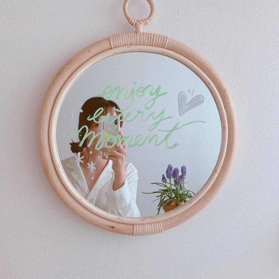 Espejo de ratán hecho a mano!! El marco de madera tiene poca elasticidad y ayuda a proteger el espejo redondo, por lo que es más duradero.